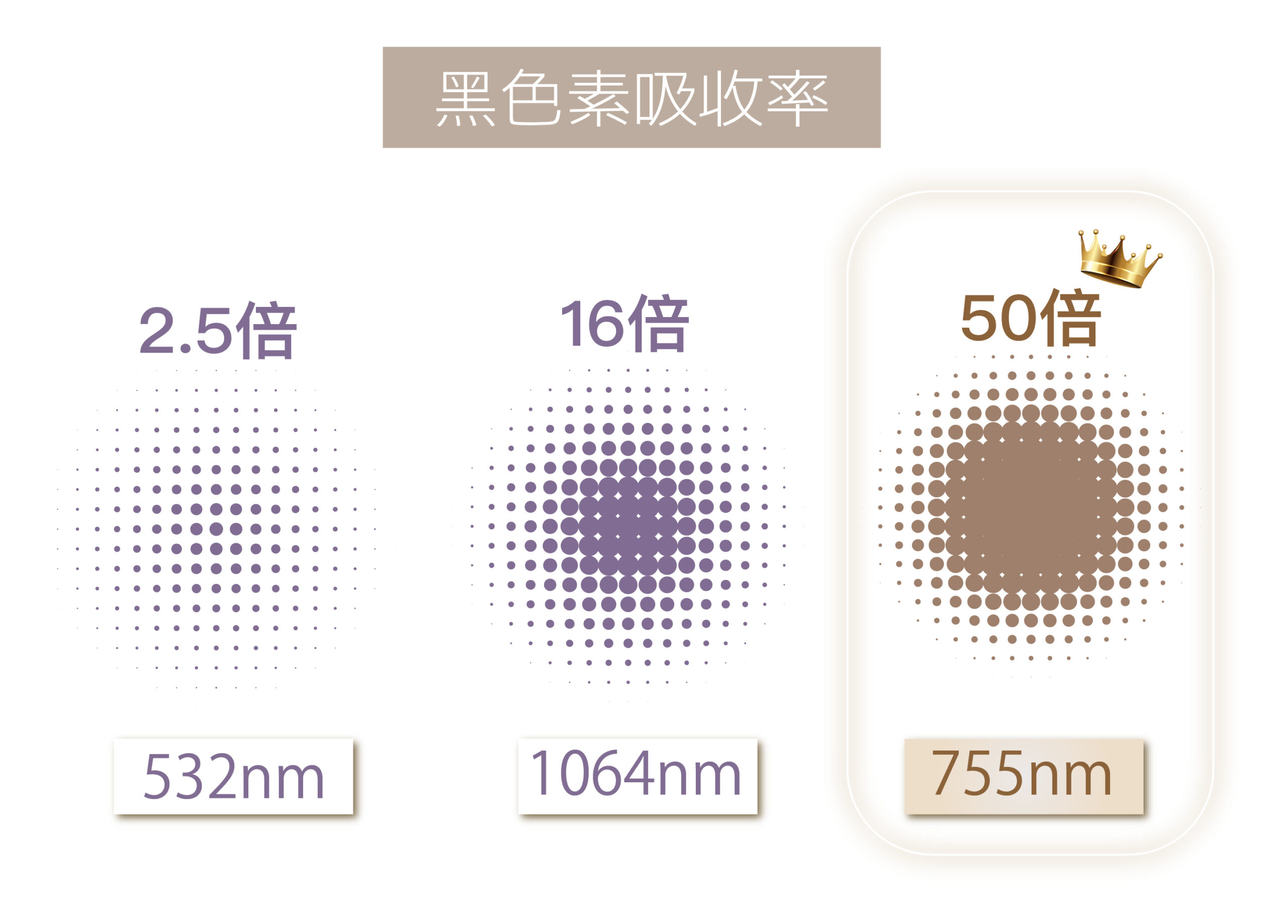 50倍吸收黑色素,高黑色素清除率大大降底所須療程次數,不易波吸周邊組織,不會岀現結焦情況,不易反黑!